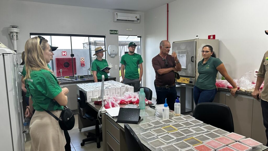 Em seguida foram guiados até o laboratório de sementes, onde foram recepcionados pela Coordenadora Maria Luiza e a equipe de analistas. Acompanharam, atentos, informações sobre o desenvolvimento de análise de sementes de soja, milho, algodão, arroz e feijão e aproveitaram para fazer questionamentos acerca das atividades desenvolvidas no local. A visita foi encerrada com um tour guiado pela Coordenadora de Nematologia Maira Fontanela, e também no parque tecnológico que se prepara para receber o Show Safra.