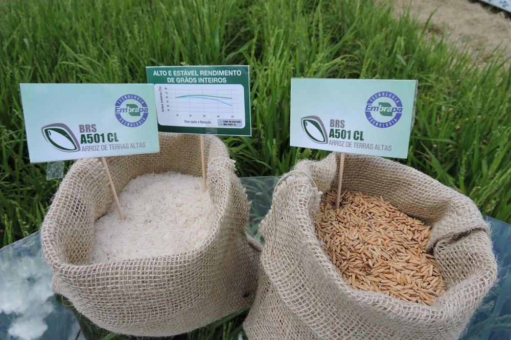 A Embrapa e a Basf lançaram nesta quarta-feira, durante o Show Safra BR 163, em Lucas do Rio Verde (MT), a BRS A501 CL, primeira cultivar de arroz de terras altas resistente a herbicida. A apresentação do material, foi realizada no estande da Embrapa e contou com a participação dos pesquisadores responsáveis pelo desenvolvimento do material, sementeiras licenciadas e convidados.