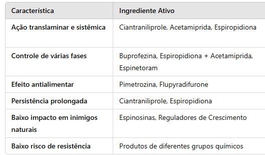 - Produtos translaminares são ideais para atingir ninfas protegidas na face inferior das folhas. Certifique-se de que a pulverização cubra toda a área da planta.