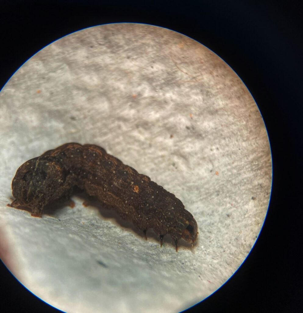 O objetivo do levantamento foi compreender o cenário de final de ciclo da cultura do milho. Foram feitas quatro coletas de espigas secas em lavouras no estágio 6, onde foram encontradas espécies de lagartas que poderiam estar atuando na região.