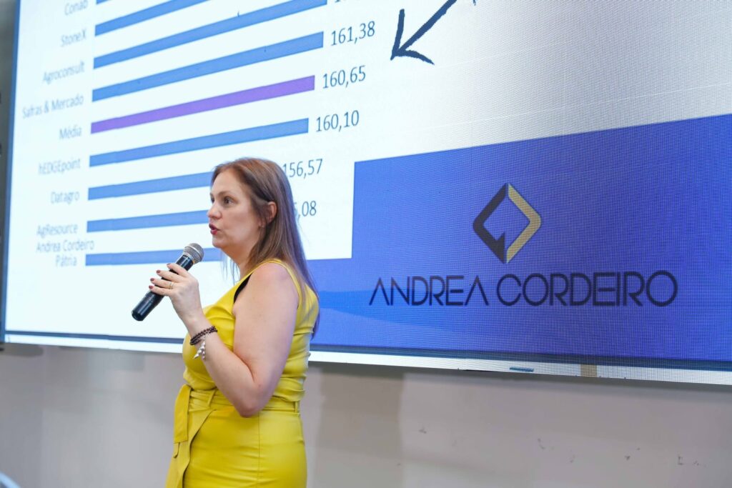 A outra palestra do encontro foi sobre mercado agrícola e as tendências do agronegócio para os próximos anos. Andrea Cordeiro, que é especialista em comercialização Agro, mestranda em negócios com China, disse que o tema é relevante, assim como o agronegócio brasileiro. E essa análise ganha importância diante das condições climáticas, de guerra e também política. “Um fator muito novo, muito fresco, que é a Argentina, com a volta de um governo de direita que confere grande competitividade, como fica o agronegócio brasileiro sobre tudo isso”, ponderou   a palestrante.