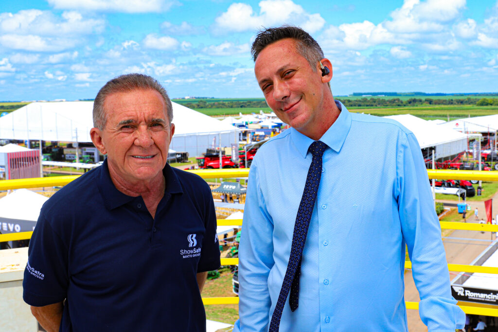 O segundo dia do Show Safra Mato Grosso contou com uma visita inusitada e descontraída nesta terça-feira (25), o repórter Flavio Fuzil, integrante do programa Pânico, da rádio e TV Jovem Pan, esteve no parque tecnológico da Fundação Rio Verde para conhecer de perto um dos maiores eventos do agronegócio brasileiro. Em meio a piadas, elogios e reflexões, Fuzil fez uma entrada ao vivo diretamente da vistosa caixa d’água do parque — um dos pontos mais altos do local — para os estúdios da emissora em São Paulo.