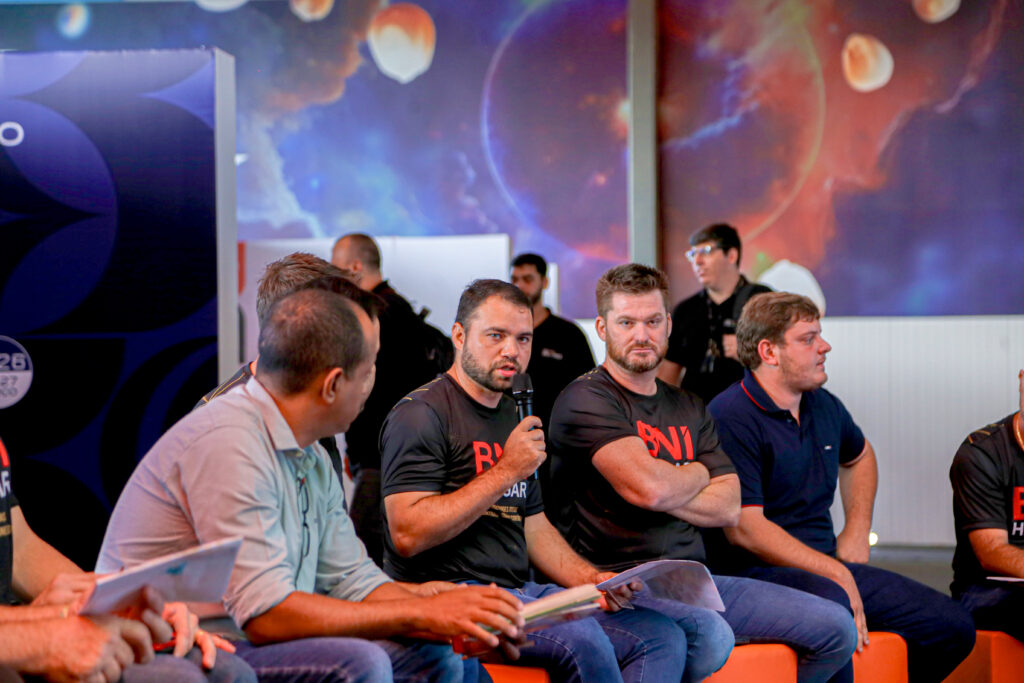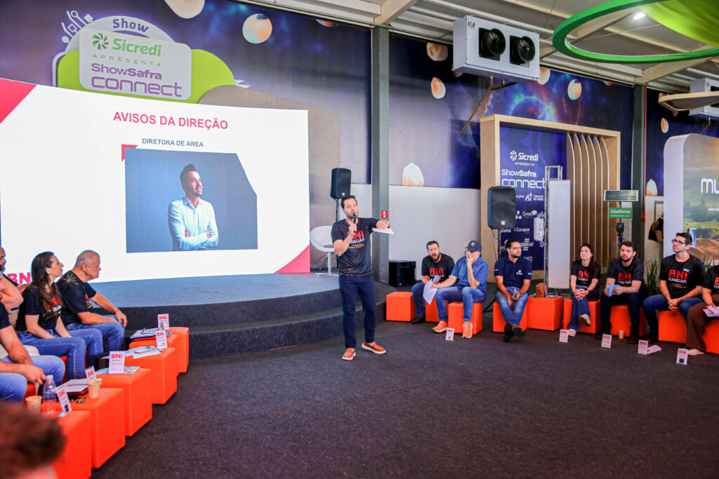 O pavilhão do Show Safra Connect, um dos universos do Show Safra Mato Grosso, foi palco para um encontro estratégico de conexões e oportunidades. O evento recebeu a reunião do BNI Hangar, um grupo focado na inovação em negócios, que tem como principal objetivo a geração de networking, a troca de experiências e a expansão de oportunidades entre seus membros.