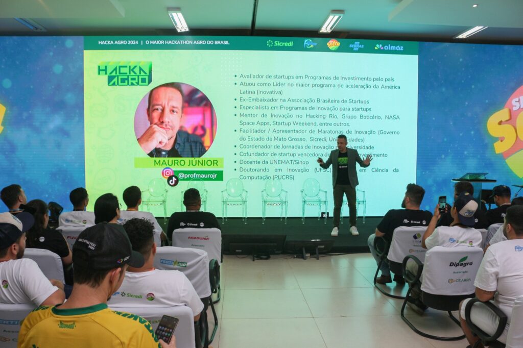 O presidente da Fundação Rio Verde disse ainda que o Show Safra tem o desafio de apresentar em cinco dias a pujança do agronegócio mato-grossense. Joci Piccini acredita que o setor produtivo não alcançou 30% do que é possível atingir nas várias atividades agropecuárias e que aumentar o nível de desenvolvimento depende das novas tecnologias e inovações de grupos, como os que participam do Hacka Agro. “Vocês têm o desafio de propor soluções para o agro, está nas mãos de vocês e dessas tecnologias que vocês passam a desenvolver”, destacou.